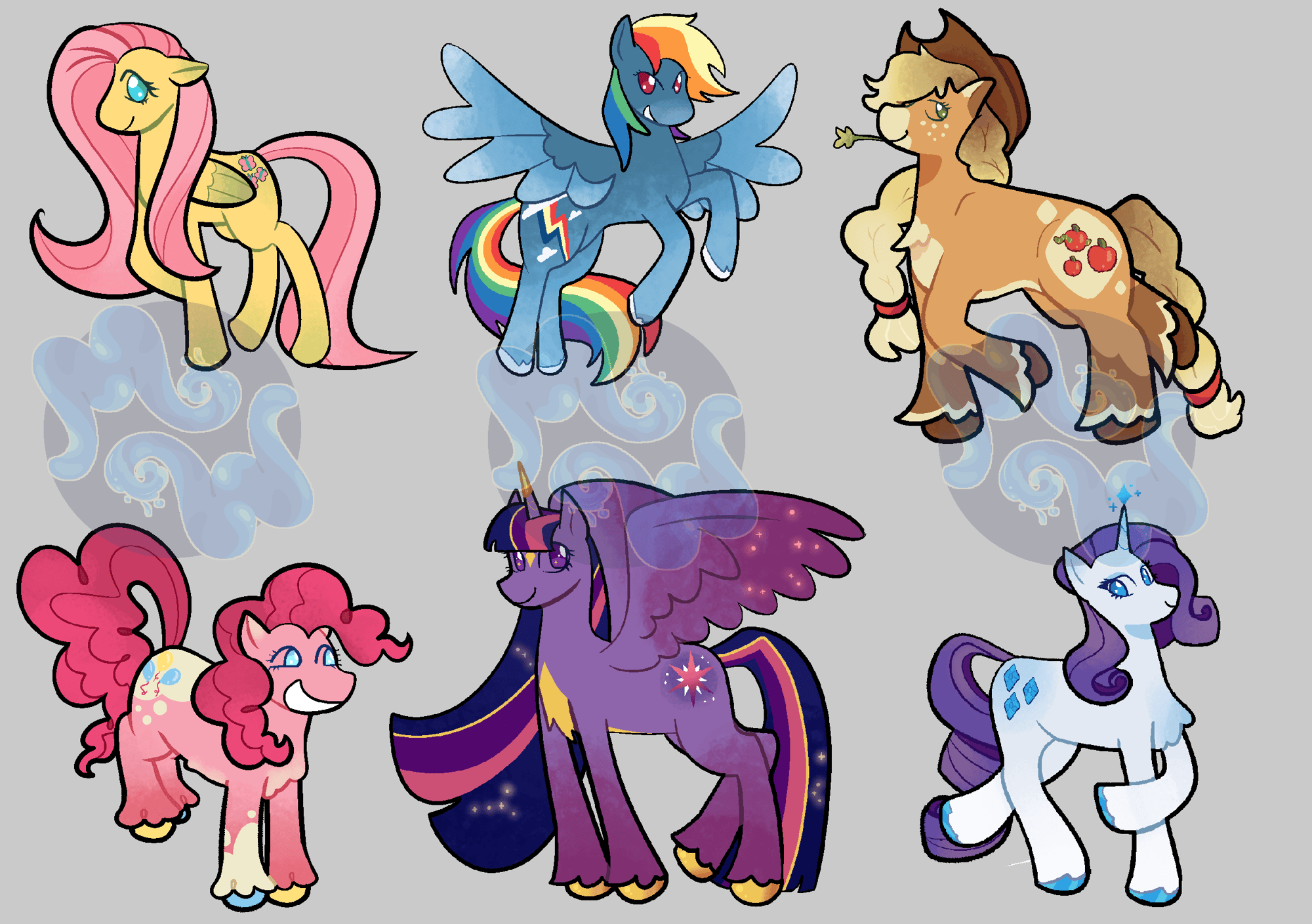 These are vinyl sticker sheets, 7 inches long on their longest side and they include all of the mane six ponies.